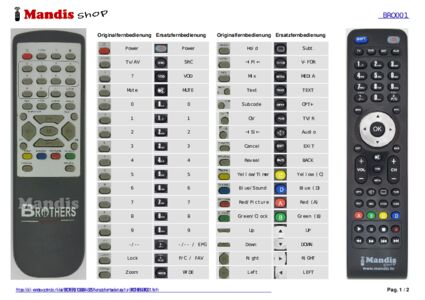 Ein Dokument ist enthalten, um die Verwendung der neuen Fernbedienung zu erleichtern, indem es die Tastenbelegung zeigt.
