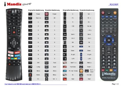 Diese Fernbedienung ersetzt Ihre RC4390P (30101765) in vollem Umfang und bietet alle Funktionen des Originals.