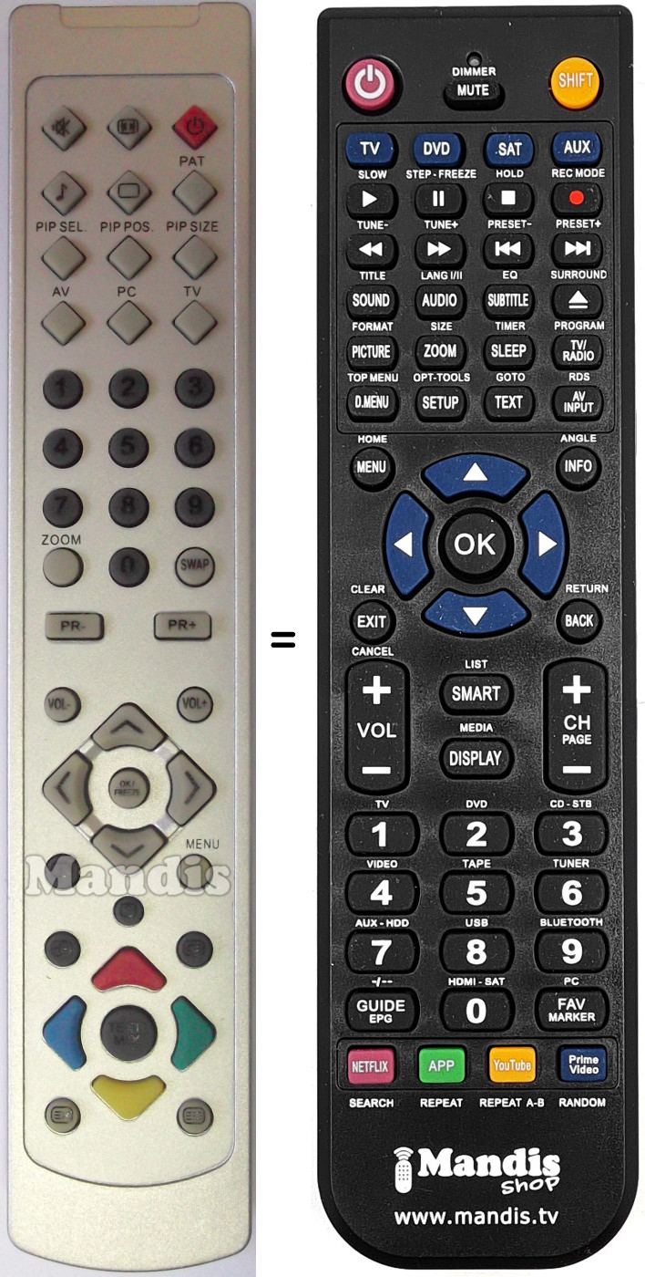 Es handelt sich jedoch nicht um eine Universalfernbedienung sondern um eine Fernbedienung die das Original ersetzt.