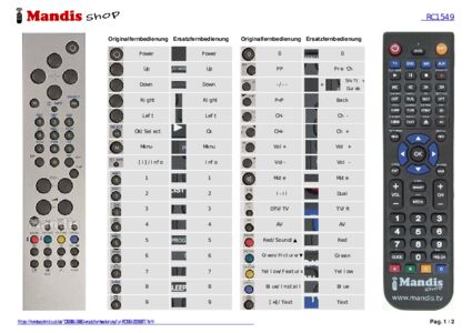 Ein Dokument ist enthalten, um die Verwendung der neuen Fernbedienung zu erleichtern, indem es die Tastenbelegung zeigt.