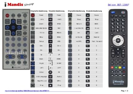 Home > Marken > Fernbedienungen Belson > Fernbedienung für Belson BST-13097
