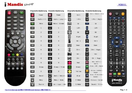 Ein Dokument ist enthalten, um die Verwendung der neuen Fernbedienung zu erleichtern, indem es die Tastenbelegung zeigt.