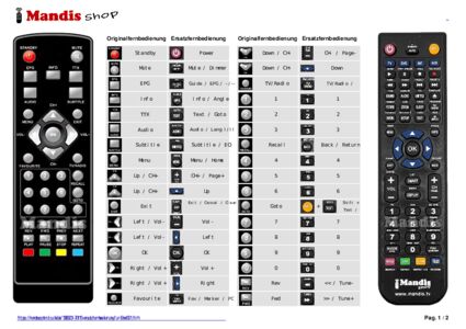 Ein Dokument ist enthalten, um die Verwendung der neuen Fernbedienung zu erleichtern, indem es die Tastenbelegung zeigt.