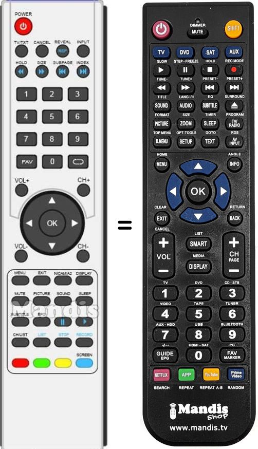 Es handelt sich jedoch nicht um eine Universalfernbedienung sondern um eine Fernbedienung die das Original ersetzt.