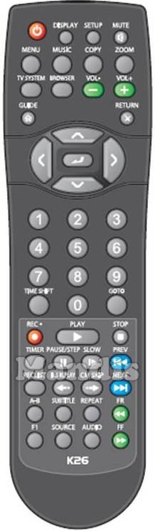 Fernbedienung Original K26 zur Steuerung der Multimedia Festplatten der Marke Blusens. Es handelt sich um eine Originalfernbedienung.