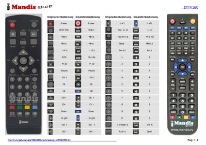Diese Fernbedienung ersetzt Ihre DTT4160 (RT4160) in vollem Umfang und bietet alle Funktionen des Originals.