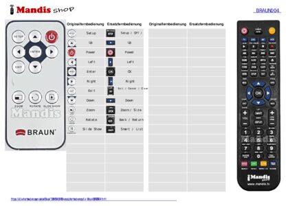 Ein Dokument ist enthalten, um die Verwendung der neuen Fernbedienung zu erleichtern, indem es die Tastenbelegung zeigt.