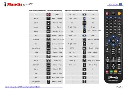 Ein Dokument ist enthalten, um die Verwendung der neuen Fernbedienung zu erleichtern, indem es die Tastenbelegung zeigt.