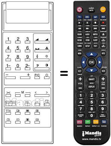 Fernbedienung, die das Original und die Gesamtheit seiner Funktionen, vollständig ersetzt. Es handelt sich jedoch nicht um eine Universalfernbedienung sondern um eine Fernbedienung die das Original ersetzt. Sie erhalten eine nach Einlegen der Batterien sofort einsatzbereite Fernbedienung. Jegliches Programmieren entfällt. Wir geben umfassende Garantie dafür, dass diese Fernbedienung alle Funktionen der Originalfernbedienung erfüllt.