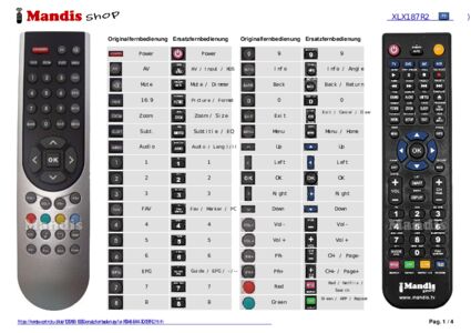Ein Dokument ist enthalten, um die Verwendung der neuen Fernbedienung zu erleichtern, indem es die Tastenbelegung zeigt.