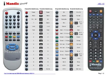 Ein Dokument ist enthalten, um die Verwendung der neuen Fernbedienung zu erleichtern, indem es die Tastenbelegung zeigt.