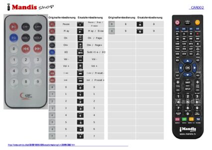 Ein Dokument ist enthalten, um die Verwendung der neuen Fernbedienung zu erleichtern, indem es die Tastenbelegung zeigt.