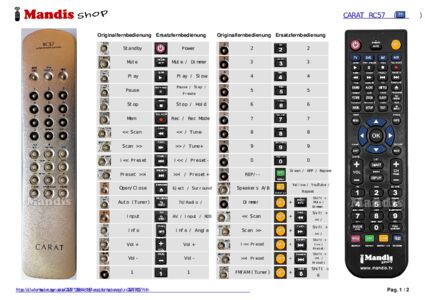Diese Fernbedienung ersetzt Ihre RC57 in vollem Umfang und bietet alle Funktionen des Originals.