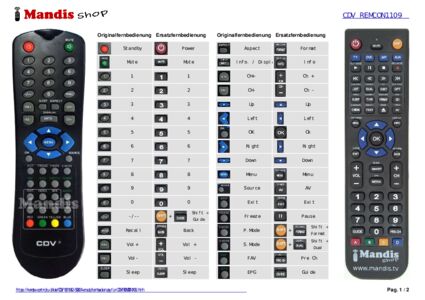 Ein Dokument ist enthalten, um die Verwendung der neuen Fernbedienung zu erleichtern, indem es die Tastenbelegung zeigt.