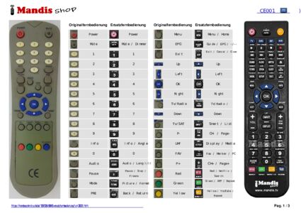 Diese Fernbedienung ersetzt Ihre CE001 in vollem Umfang und bietet alle Funktionen des Originals.