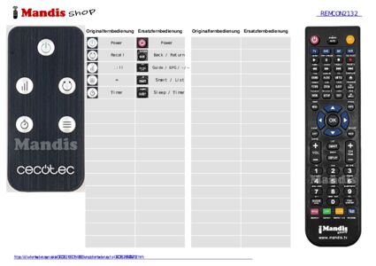 Diese Fernbedienung ersetzt Ihre REMCON2132 in vollem Umfang und bietet alle Funktionen des Originals.