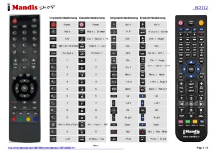 Diese Fernbedienung ersetzt Ihre RC2712 (30073061) in vollem Umfang und bietet alle Funktionen des Originals.