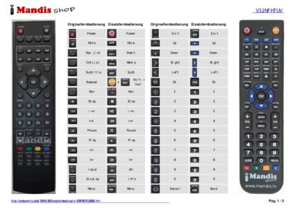 Diese Fernbedienung ersetzt Ihre V32NFHTUV (EU1300002) in vollem Umfang und bietet alle Funktionen des Originals.