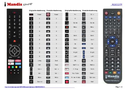 Diese Fernbedienung ersetzt Ihre RC43137P (30101759) in vollem Umfang und bietet alle Funktionen des Originals.