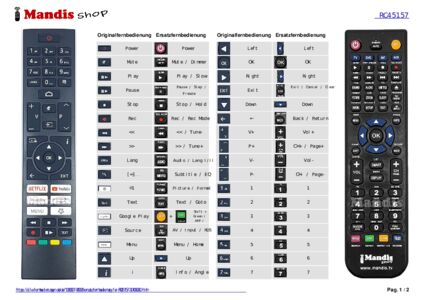 Diese Fernbedienung ersetzt Ihre RC45157 (30109080) in vollem Umfang und bietet alle Funktionen des Originals.