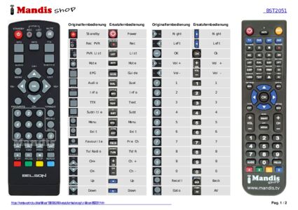 Diese Fernbedienung ersetzt Ihre TDT1300HD in vollem Umfang und bietet alle Funktionen des Originals.