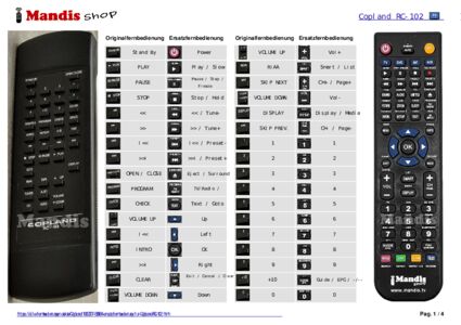 Diese Fernbedienung ersetzt die meisten Funktionen Ihres RC-102. Es ist keine Universalfernbedienung, sondern eine Kopie mit den meisten Tasten und Funktionen Ihres Originals.