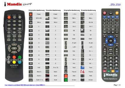Ein Dokument ist enthalten, um die Verwendung der neuen Fernbedienung zu erleichtern, indem es die Tastenbelegung zeigt.