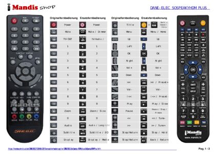 Ein Dokument ist enthalten, um die Verwendung der neuen Fernbedienung zu erleichtern, indem es die Tastenbelegung zeigt.