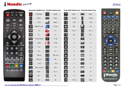 Ein Dokument ist enthalten, um die Verwendung der neuen Fernbedienung zu erleichtern, indem es die Tastenbelegung zeigt.