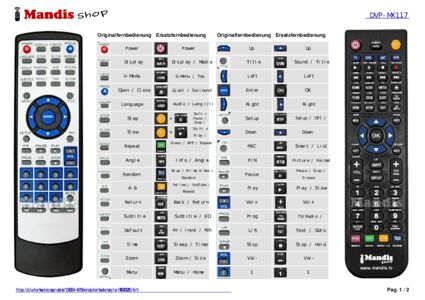 Im Folgenden zeigen wir Ihnen die Zuordnung jedes einzelnen Knopfes der Originalfernbedienung zu der Taste, die dieselbe Funktion auf der Ersatzfernbedienung ausführt. In einigen Fällen müssen Sie möglicherweise die UMSCHALT-Taste drücken, bevor Sie eine andere Taste drücken, um bestimmte Aktionen auszuführen. Diese zusätzlichen Funktionen werden oft wenig genutzt und dienen dazu, das Verständnis der Ersatzfernbedienung zu erleichtern oder weil die Originalfernbedienung mehr Tasten hat als das entsprechende Modell.