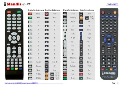 Ein Dokument ist enthalten, um die Verwendung der neuen Fernbedienung zu erleichtern, indem es die Tastenbelegung zeigt.