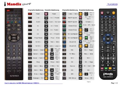 Ein Dokument ist enthalten, um die Verwendung der neuen Fernbedienung zu erleichtern, indem es die Tastenbelegung zeigt.