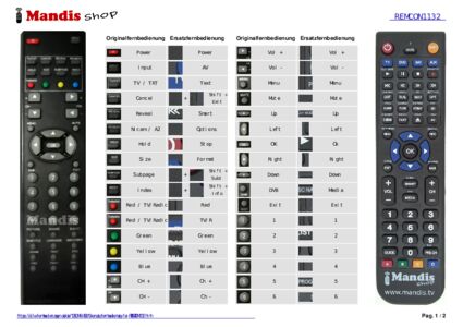 Ein Dokument ist enthalten, um die Verwendung der neuen Fernbedienung zu erleichtern, indem es die Tastenbelegung zeigt.