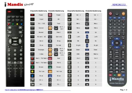 Ein Dokument ist enthalten, um die Verwendung der neuen Fernbedienung zu erleichtern, indem es die Tastenbelegung zeigt.