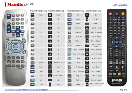Ein Dokument ist enthalten, um die Verwendung der neuen Fernbedienung zu erleichtern, indem es die Tastenbelegung zeigt.