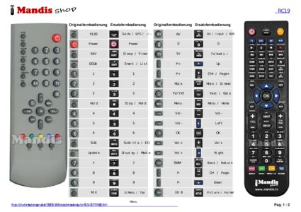 Ein Dokument ist enthalten, um die Verwendung der neuen Fernbedienung zu erleichtern, indem es die Tastenbelegung zeigt.