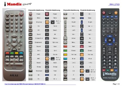 Diese Fernbedienung ersetzt Ihre RML1703 in vollem Umfang und bietet alle Funktionen des Originals.