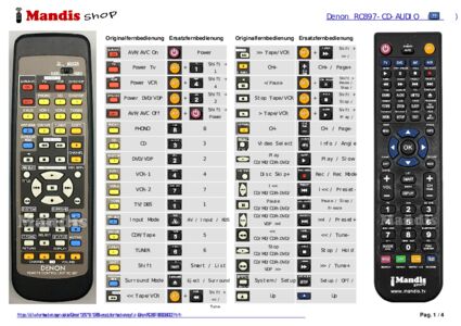 Ein Dokument ist enthalten, um die Verwendung der neuen Fernbedienung zu erleichtern, indem es die Tastenbelegung zeigt.