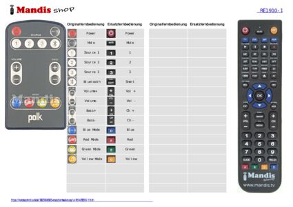 Ein Dokument ist enthalten, um die Verwendung der neuen Fernbedienung zu erleichtern, indem es die Tastenbelegung zeigt.