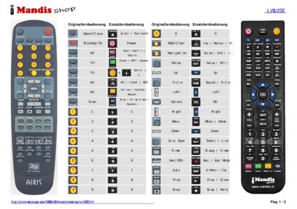Ein Dokument ist enthalten, um die Verwendung der neuen Fernbedienung zu erleichtern, indem es die Tastenbelegung zeigt.