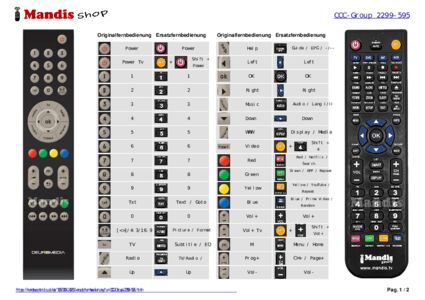 Ein Dokument ist enthalten, um die Verwendung der neuen Fernbedienung zu erleichtern, indem es die Tastenbelegung zeigt.