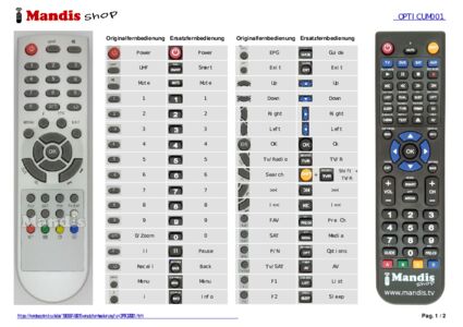 Ein Dokument ist enthalten, um die Verwendung der neuen Fernbedienung zu erleichtern, indem es die Tastenbelegung zeigt.