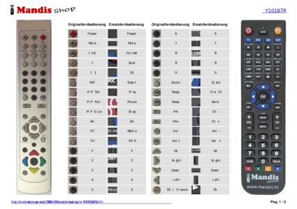 Ein Dokument ist enthalten, um die Verwendung der neuen Fernbedienung zu erleichtern, indem es die Tastenbelegung zeigt.