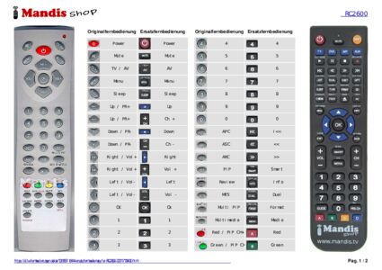 Ein Dokument ist enthalten, um die Verwendung der neuen Fernbedienung zu erleichtern, indem es die Tastenbelegung zeigt.