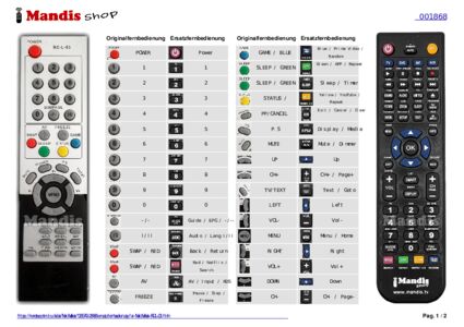 Ein Dokument ist enthalten, um die Verwendung der neuen Fernbedienung zu erleichtern, indem es die Tastenbelegung zeigt.