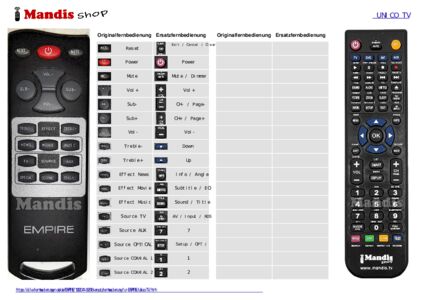 Ein Dokument ist enthalten, um die Verwendung der neuen Fernbedienung zu erleichtern, indem es die Tastenbelegung zeigt.