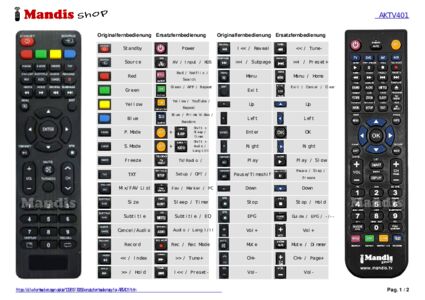 Ein Dokument ist enthalten, um die Verwendung der neuen Fernbedienung zu erleichtern, indem es die Tastenbelegung zeigt.