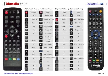 Ein Dokument ist enthalten, um die Verwendung der neuen Fernbedienung zu erleichtern, indem es die Tastenbelegung zeigt.