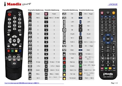 Diese Fernbedienung ersetzt Ihre LRCS02E in vollem Umfang und bietet alle Funktionen des Originals.