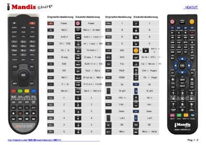 Diese Fernbedienung ersetzt Ihre HD450T in vollem Umfang und bietet alle Funktionen des Originals.